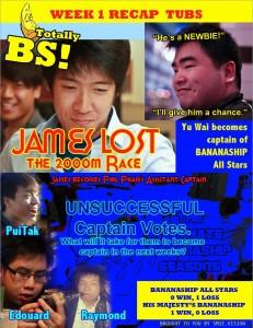 Week 2 – Challenge #1 (May 6 to May 12) His Majesty’s BananaShip called for victory with a time of 12:03 in their 2000m race. While Bananaship All-Stars were close behind with 12:40. James Vu has been booted out as captain of All-Stars! In a big turn of events, Yu Wai was voted captain outvoting …