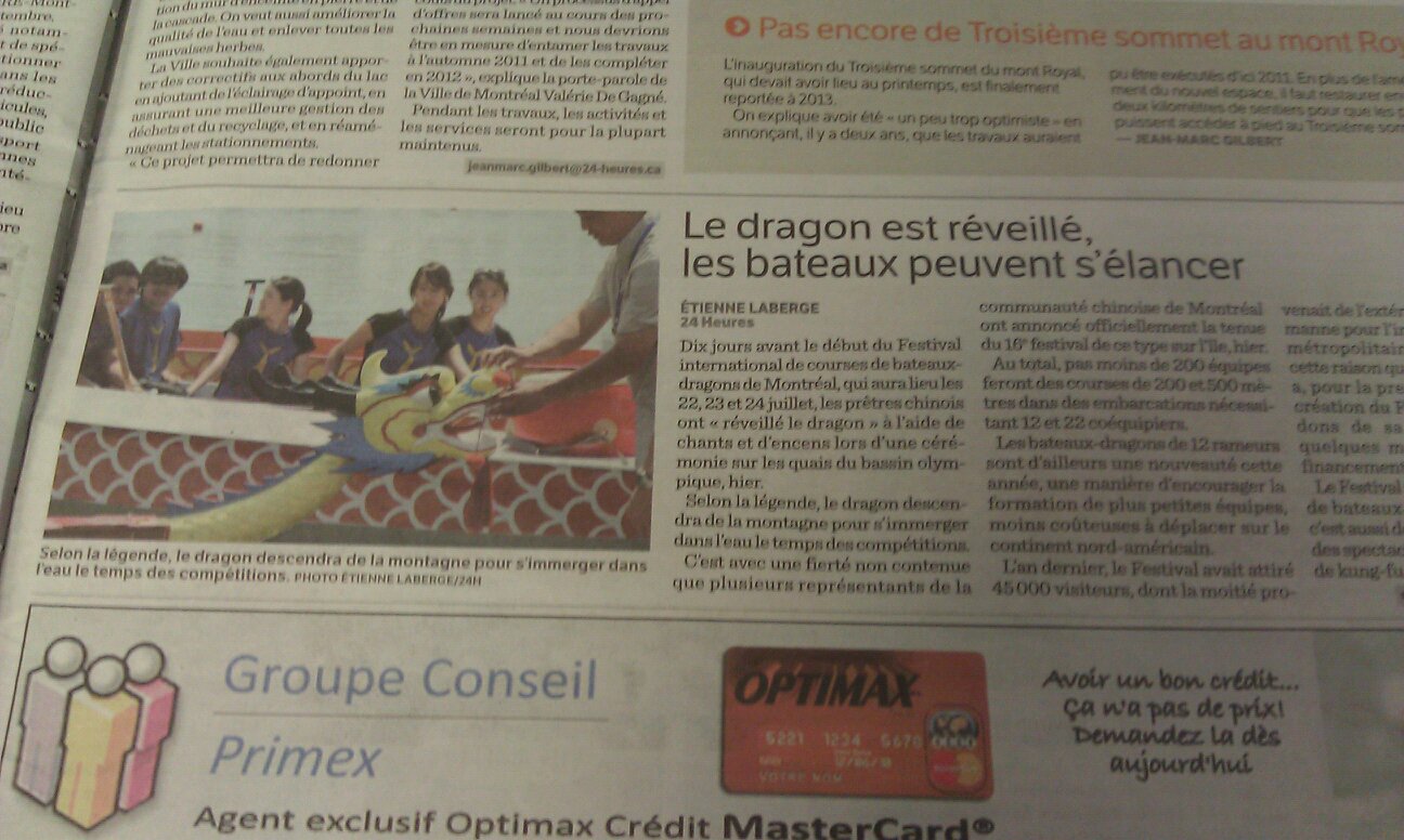 For those who use public transit and took a copy of today’s 24 Heures, you’ll be greeted with us on page 5! On Tuesday, BananaShip took part in the ceremonial eye-dotting of the Montreal Festival’s new 10’s boats.