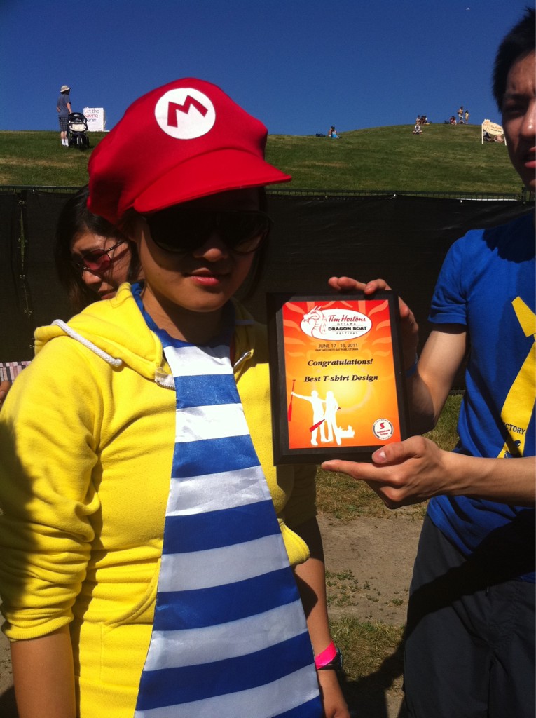 In our first appearance at the 2011 Ottawa Dragon Boat Festival, BananaShip was nominated for “Best Team Spirit”, and was awarded the “Best T-shirt Design”! And after a successful first day of races, we were ranked #30 out of 165 teams. Keep up the great effort everyone!